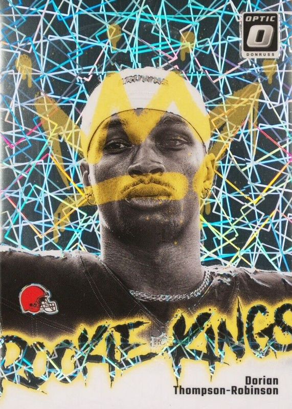 Dorian Thompson-Robinson's Football cards are available in at least 26 sets. Dorian Thompson-Robinson's biggest 7-day price movers are 2023 Optic #1 Rookie Kings /(SSP), 2023 Mosaic #ND-6 NFL Debut - No Huddle Gold /10, and 2023 Mosaic #ND-6 NFL Debut - Gold Sparkle /24.
