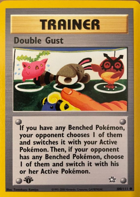 Double Gust's Pokemon cards are available in at least 2 sets. Double Gust's biggest 7-day price movers are 2000 Neo Genesis #100/111 1st Edition, 2000 Japanese Gold, Silver, to a New World Base, and 2000 Neo Genesis #100/111 Unlimited.