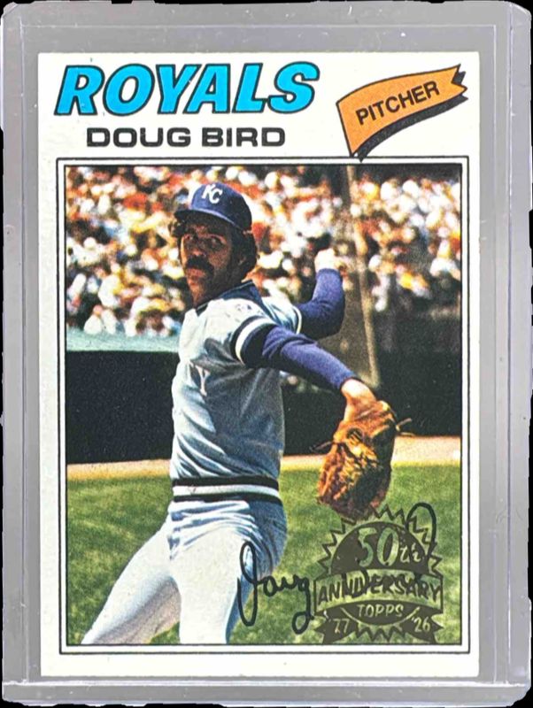 Doug Bird's Baseball cards are available in at least 15 sets. Doug Bird's biggest 7-day price movers are 2026 Topps Heritage #556 1977 Topps 50th Anniversary Stamped Buybacks, 2024 Topps Heritage #364 50th Anniversary Buybacks, and 1975 Topps Mini #364 Base.