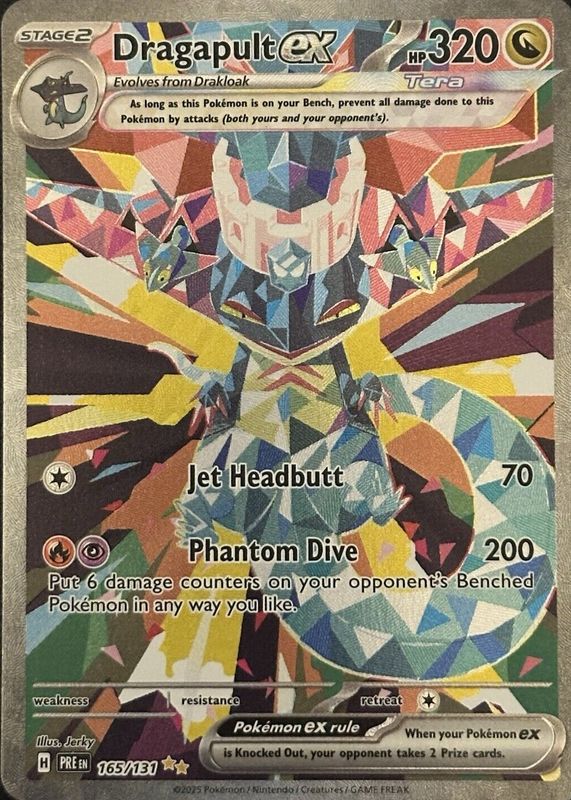 Dragapult ex's Pokemon cards are available in at least 6 sets. Dragapult ex's biggest 7-day price movers are 2025 Scarlet & Violet: Prismatic Evolutions #073/131 Double Rare, 2024 Scarlet & Violet: Twilight Masquerade #200/167 Ultra Rare, and 2024 Japanese Scarlet & Violet: Transformation Mask #081/101 Double Rare.