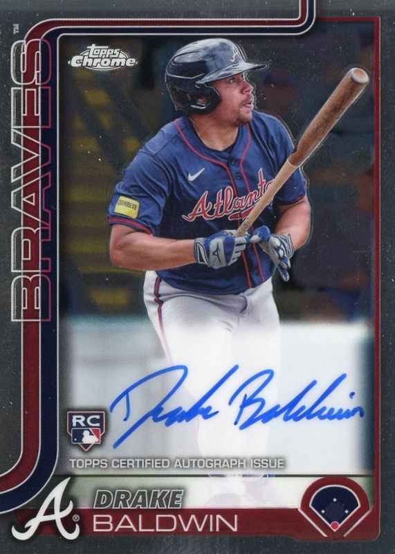 Drake Baldwin's Baseball cards are available in at least 18 sets. Drake Baldwin's biggest 7-day price movers are 2025 Topps Chrome Update #USC88 Rookie Debut - RayWave Refractor, 2025 Topps Update #US113 Rookie Debut - Silver Foilboard, and 2025 Bowman Chrome Sapphire Edition #75 Base.