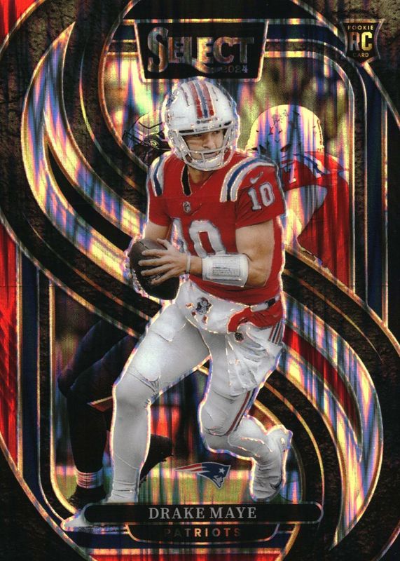 Drake Maye's Football cards are available in at least 85 sets. Drake Maye's biggest 7-day price movers are 2024 Prizm #22 Fireworks - Silver, 2024 Phoenix #179 Silver, and 2024 Topps Resurgence #164 Sky Blue & Pink Shock Refractor.