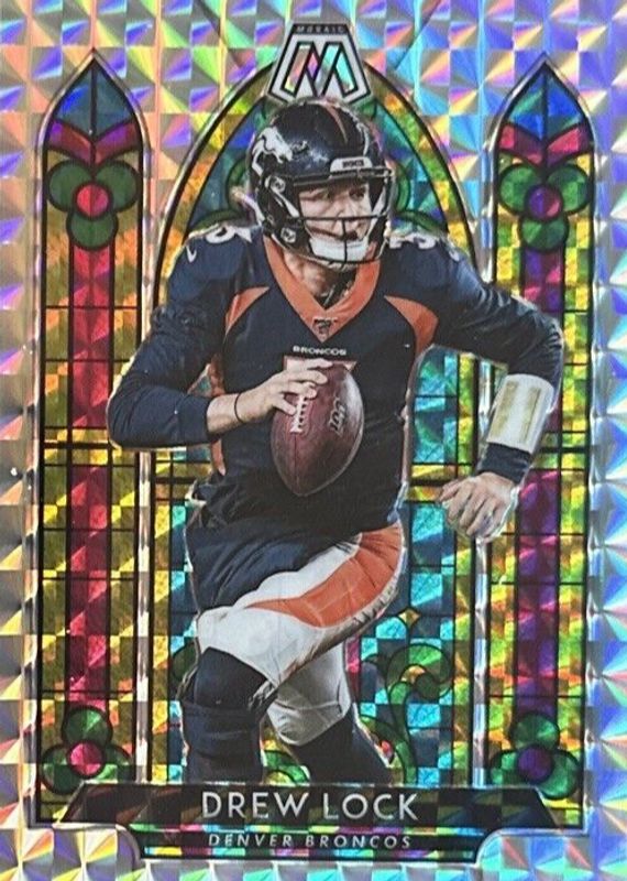 Drew Lock's Football cards are available in at least 35 sets. Drew Lock's biggest 7-day price movers are 2019 Prizm #304 Base, 2020 Mosaic #SG5 Stained Glass /(SSP), and 2019 Donruss #RPJ-3 Rookie Phenoms Jerseys.