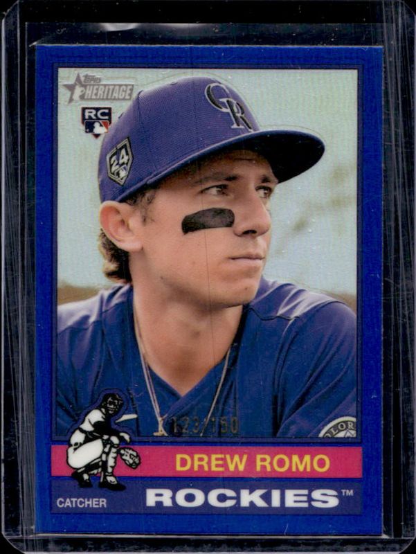 Drew Romo's Baseball cards are available in at least 18 sets. Drew Romo's biggest 7-day price movers are 2025 Topps Heritage #386 Chrome - Blue Refractor /150, 2025 Topps Heritage #386 Chrome - Burgundy Sparkle Refractor, and 2025 Topps Tribute #TA-DR Tribute Autograph - Purple /50.
