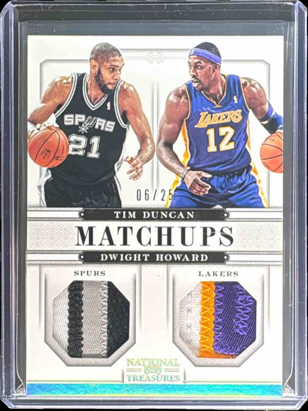 Dwight Howard / Tim Duncan's Basketball cards are available in at least 2 sets. Dwight Howard / Tim Duncan's biggest 7-day price movers are 2012 National Treasures #12 Matchups - Materials /49, 2012 National Treasures #12 Matchups Materials - Printing Plate Magenta /1, and 2012 National Treasures #12 Matchups Materials - Printing Plate Cyan /1.