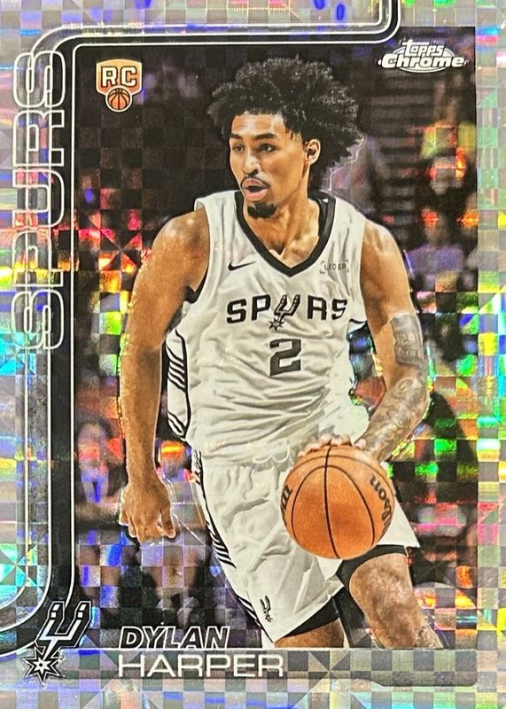 Dylan Harper's Basketball cards are available in at least 21 sets. Dylan Harper's biggest 7-day price movers are 2025 Topps #DD-32 The Daily Dribble, 2025 Topps #RTS-2 Rise to Stardom, and 2025 Topps Chrome #LD-12 Loading.
