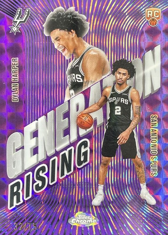Dylan Harper's Basketball cards are available in at least 17 sets. Dylan Harper's biggest 7-day price movers are 2025 Topps #L-17 Levitation, 2025 Topps #NL-2 No Limit - Purple Rainbow /250, and 2025 Topps Chrome #LD-12 Loading.