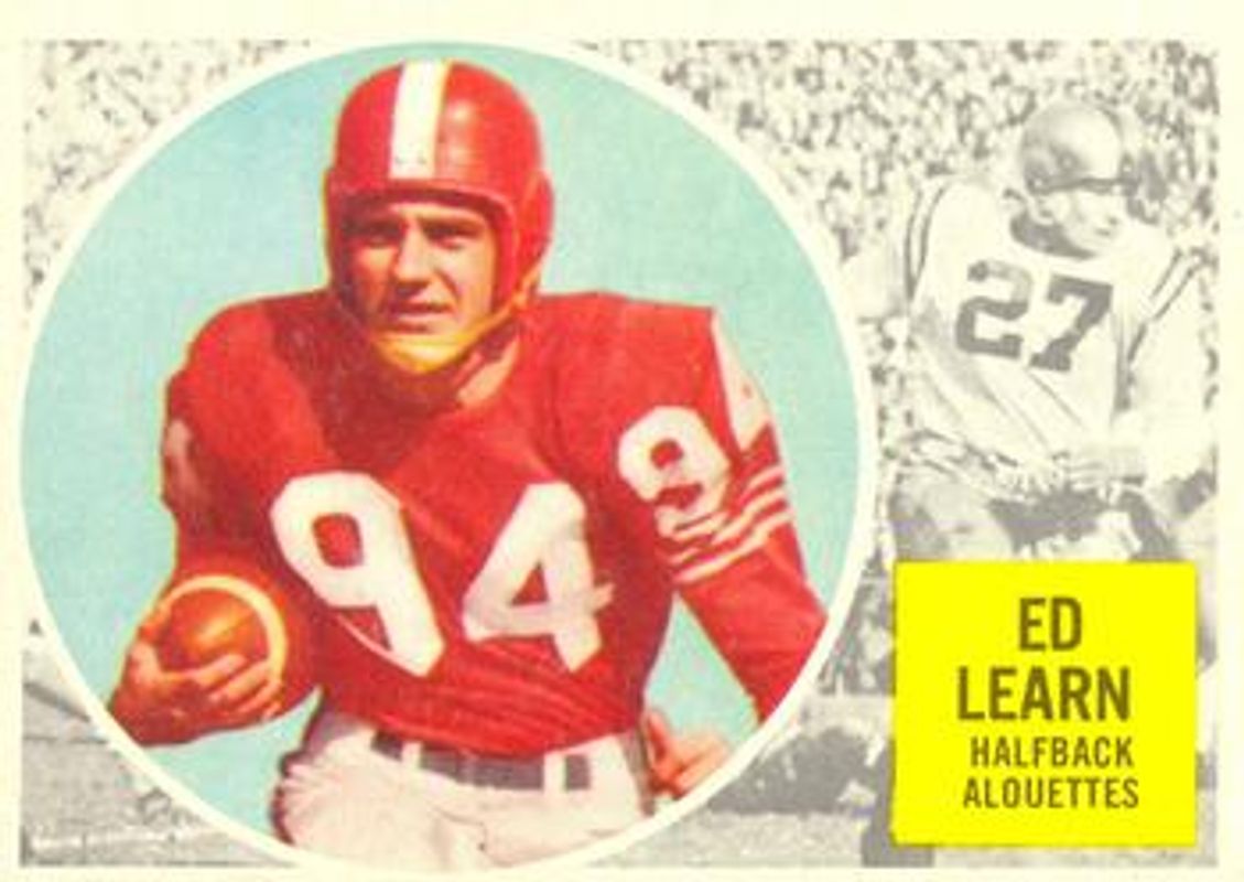 Ed Learn's Football cards are available in at least 4 sets. Ed Learn's biggest 7-day price movers are 1960 Topps CFL #44 Base, 1961 Topps CFL #68 Base, and 1962 Topps CFL #89 Base.