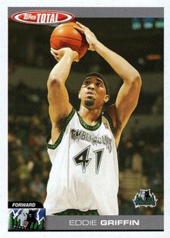 Eddie Griffin's Basketball cards are available in at least 37 sets. Eddie Griffin's biggest 7-day price movers are 2004 Topps Total #42 Base, 2004 Topps Total #42 Press Plates Magenta Front /1, and 2004 Topps Total #42 Press Plates Yellow Front /1.