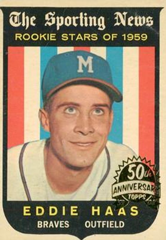 Eddie Haas' Baseball cards are available in at least 3 sets. Eddie Haas' biggest 7-day price movers are 2008 Topps Heritage #126 50th Anniversary Buybacks, 1959 Topps #126 Base, and 1959 Topps Venezuelan #126 Base.