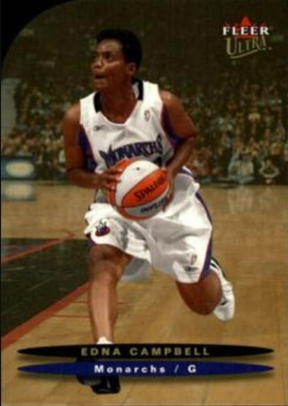 Edna Campbell's Basketball cards are available in at least 2 sets. Edna Campbell's biggest 7-day price movers are 2003 Fleer Ultra WNBA #93 Gold Medallion /25, 2003 Fleer Ultra WNBA #93 Base, and 2002 Fleer Ultra WNBA #19 Base.