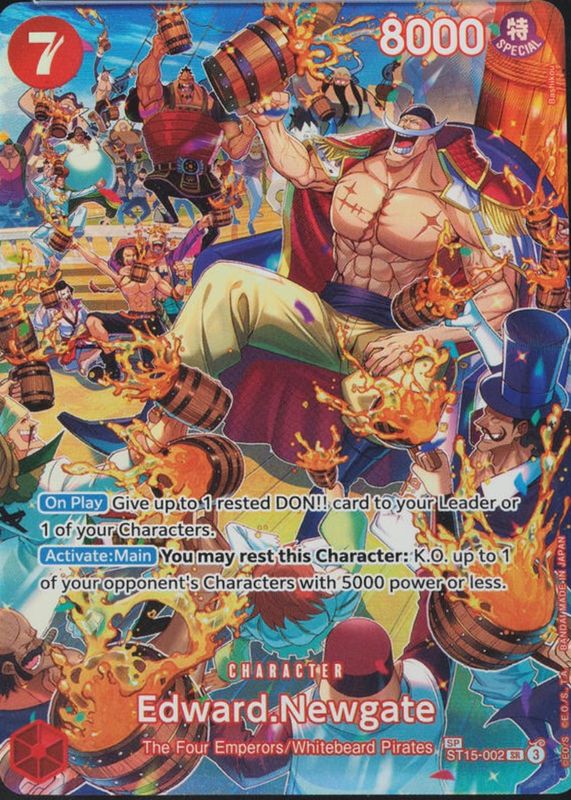 Edward.Newgate's One Piece cards are available in at least 3 sets. Edward.Newgate's biggest 7-day price movers are 2025 Royal Blood #ST15-002 Super Rare (SP), 2023 Paramount War #OP02-001 Leader (Alternate Art), and 2024 Two Legends #OP08-043 Super Rare.