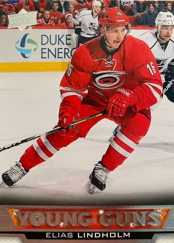 Elias Lindholm's Hockey cards are available in at least 57 sets. Elias Lindholm's biggest 7-day price movers are 2013 Upper Deck #469 Young Guns Base, 2013 SP Authentic #282 Future Watch Auto /999, and 2023 Upper Deck The Cup #25 2023 Upper Deck Update Printing Plate Booklets /1.