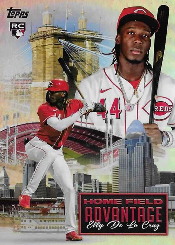 Elly De La Cruz's Baseball cards are available in at least 92 sets. Elly De La Cruz's biggest 7-day price movers are 2024 Topps Big League #TM-1 To the Moon Die-Cut, 2024 Topps Update #AC-21 All Class - Blue, and 2024 Topps #FF-17 Fantasy Favorites.