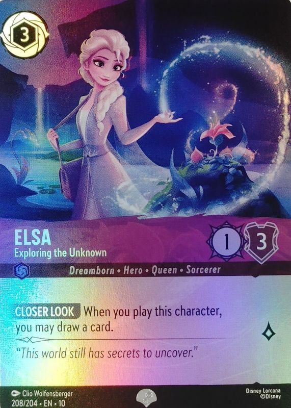 Elsa - Exploring the Unknown's Disney Lorcana cards are available in at least 1 sets. Elsa - Exploring the Unknown's biggest 7-day price movers are 2025 Whispers in the Well #208/204 Epic, 2025 Whispers in the Well #45/204 Base, and 2025 Whispers in the Well #45/204 Cold Foil.