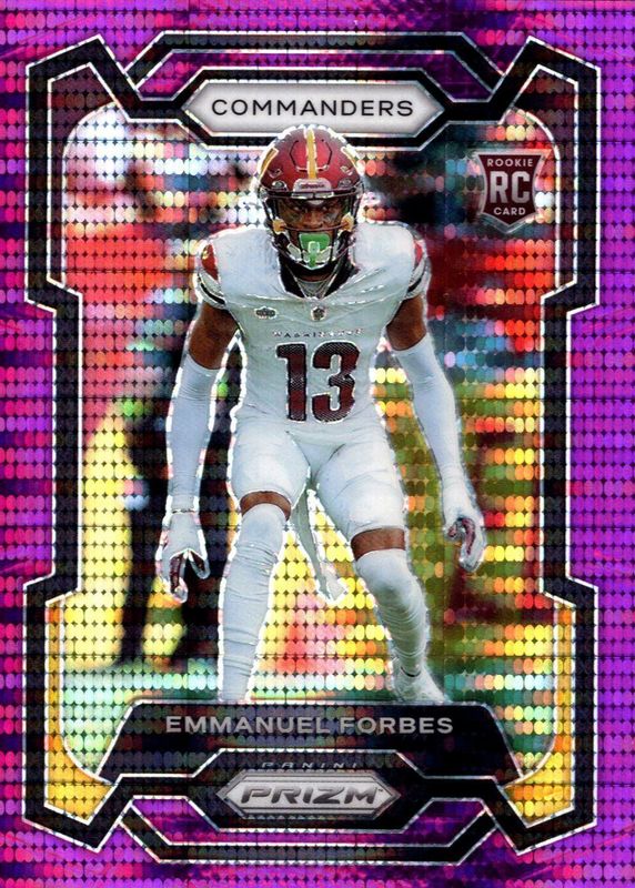 The biggest 30-day change Emmanuel Forbes cards are 2023 Prizm #399 Purple Pulsar, 2023 Prizm #399 Hyper /175, and 2023 Prizm #399 Red /(SSP).