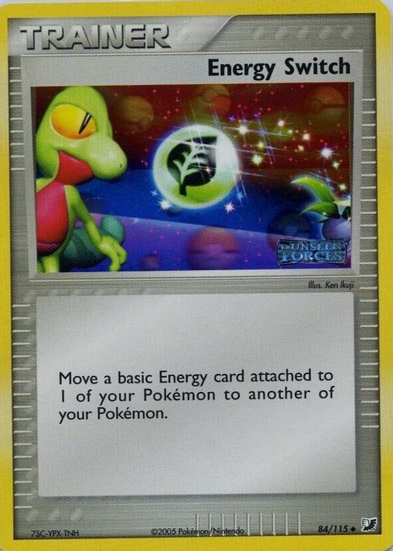 Energy Switch's Pokemon cards are available in at least 20 sets. Energy Switch's biggest 7-day price movers are 2022 Sword & Shield: Silver Tempest #212/195 Holo (Secret), 2005 EX: Unseen Forces #084/115 Reverse Holo, and 2009 Japanese HeartGold & SoulSilver: HeartGold Collection #063/070 1st Edition Reverse Holo.