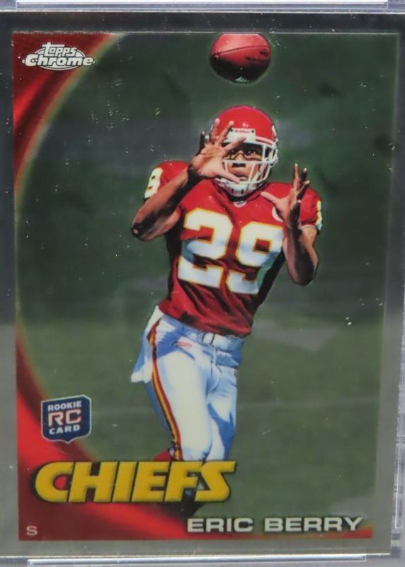 Eric Berry's Football cards are available in at least 5 sets. Eric Berry's biggest 7-day price movers are 2010 Topps Chrome #C195 Base, 2010 National Treasures #313 Rookie Patch Auto /99, and 2010 Topps Chrome #C195 Refractor.