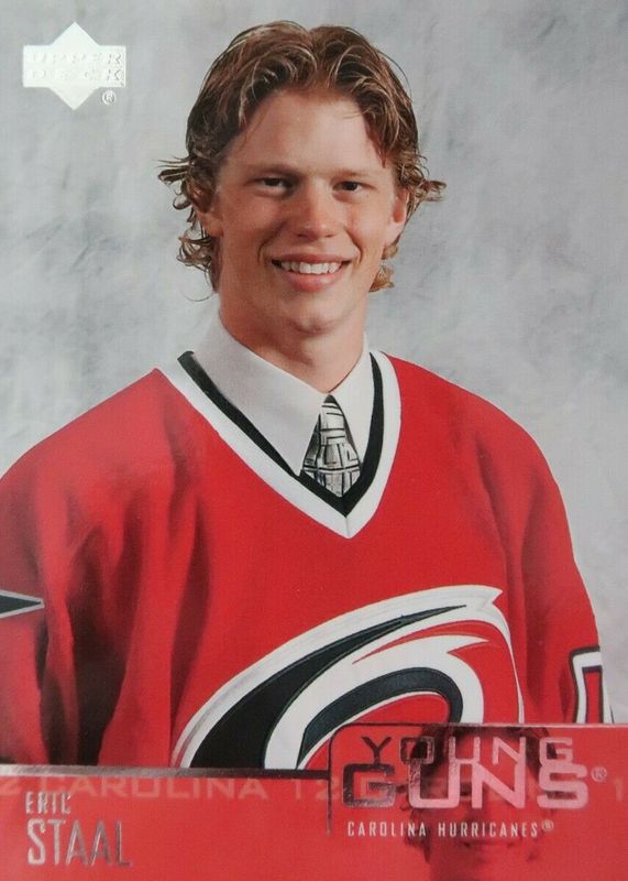 Eric Staal's Hockey cards are available in at least 214 sets. Eric Staal's biggest 7-day price movers are 2003 Upper Deck #206 Young Guns Base, 2021 Upper Deck Artifacts #RAF-ES 2005 Retro Auto Facts, and 2021 Upper Deck Artifacts #SOS-ES Signs of Success /49.