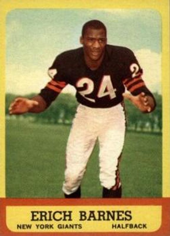 Erich Barnes' Football cards are available in at least 9 sets. Erich Barnes' biggest 7-day price movers are 1963 Topps #57 Base, 1962 Topps #111 Base, and 1960 Topps #19 Base.