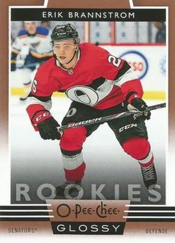 The biggest 30-day change Erik Brannstrom cards are 2019 Upper Deck #R-2 2019 O-Pee-Chee Glossy Rookies - Copper, 2019 Upper Deck #F-22 Fluorescence Magenta /5, and 2019 Upper Deck #137 MVP Stanley Cup Edition Colors & Contours Update /99.