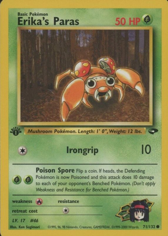 Erika's Paras' Pokemon cards are available in at least 1 sets. Erika's Paras' biggest 7-day price movers are 2000 Gym Challenge #071/132 1st Edition.