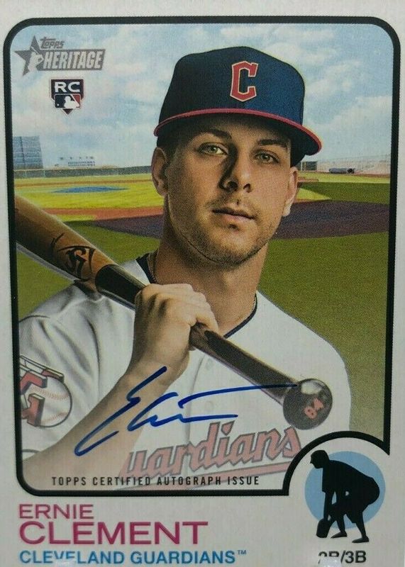 Ernie Clement's Baseball cards are available in at least 9 sets. Ernie Clement's biggest 7-day price movers are 2022 Topps Heritage #ROA-EC Real One Autographs, 2025 Topps #319 Holiday Rabbits, and 2025 Topps #319 Meijer Tin Variation.