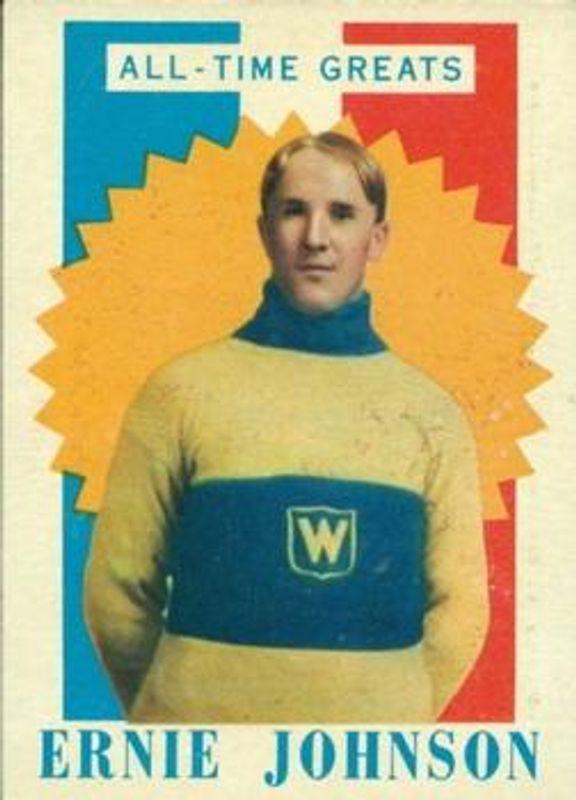 Ernie Johnson's Hockey cards are available in at least 4 sets. Ernie Johnson's biggest 7-day price movers are 1960 Topps #4 Base, 1912 Imperial Tobacco C57 #25 Base, and 1911 C55 #28 Base.