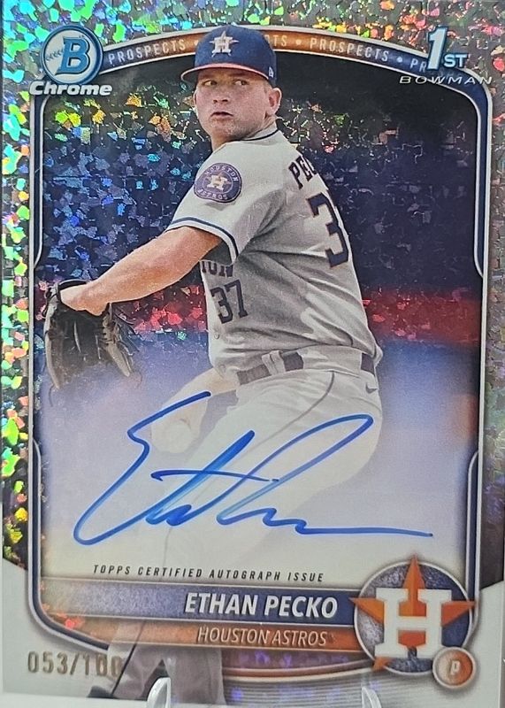 The biggest 30-day change Ethan Pecko cards are 2025 Bowman Chrome #CPA-EPE Prospect Auto - Mini-Diamond Refractor /100 (1st), 2025 Bowman Chrome #CPA-EPE Prospect Auto - Refractor /499 (1st), and 2025 Bowman Chrome #CPA-EPE Prospect Auto - Reptilian Blue Refractor /150 (1st).