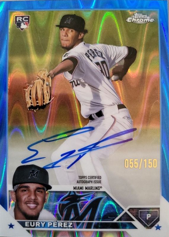 Eury Perez's Baseball cards are available in at least 37 sets. Eury Perez's biggest 7-day price movers are 2023 Topps Update #AA-73 All Aces, 2023 Topps Chrome Update #RA-EP Autographs - Blue RayWave Refractor /150, and 2023 Topps Chrome Update #USC175 Rookie Debut - Orange Refractor /25.