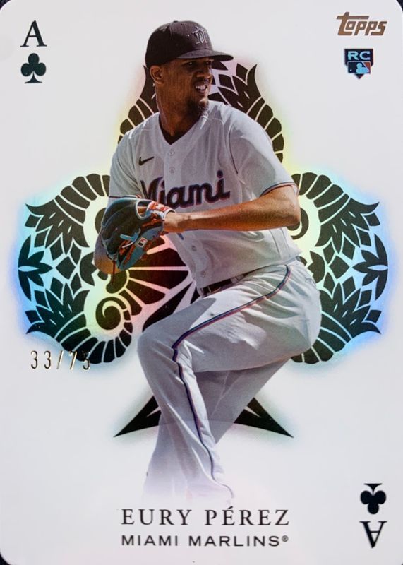 Eury Perez's Baseball cards are available in at least 39 sets. Eury Perez's biggest 7-day price movers are 2023 Topps Update #AA-73 All Aces, 2023 Topps Update #AA-73 All Aces - Gold /75, and 2023 Bowman Chrome Sapphire Edition #BSS-20 Sapphire Selections - Red /5.