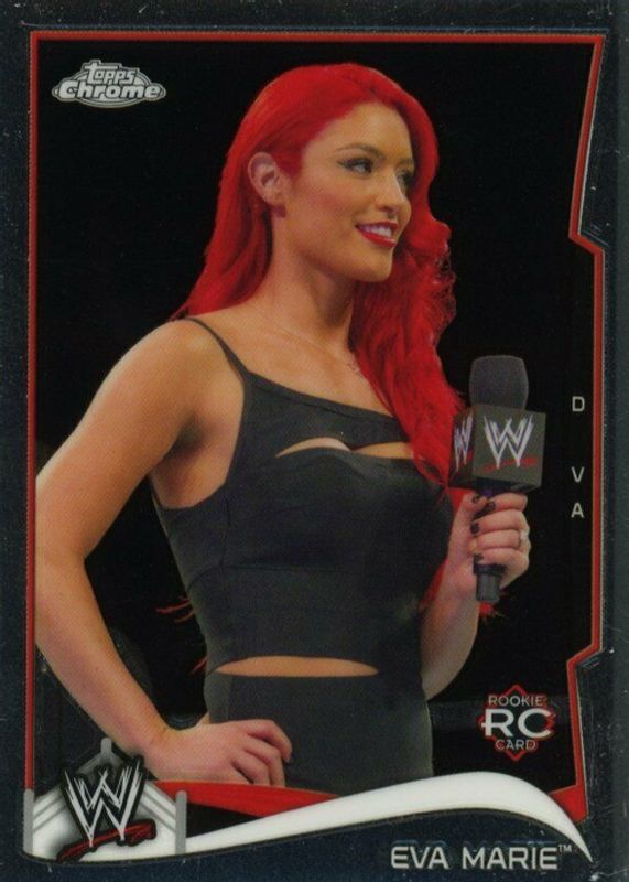 Eva Marie's Wrestling cards are available in at least 13 sets. Eva Marie's biggest 7-day price movers are 2014 Topps Chrome WWE #20 Base, 2014 Topps Chrome WWE #20 Atomic Refractor, and 2014 Topps Chrome WWE #20 Gold Refractor /50.