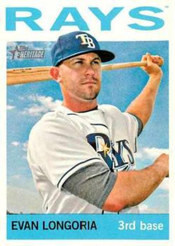 Evan Longoria's Baseball cards are available in at least 74 sets. Evan Longoria's biggest 7-day price movers are 2013 Topps Heritage #439 Base, 2025 Topps Diamond Icons #NLA-EL Autographed Nike Logo Patch /1, and 2025 Topps Diamond Icons #DTA-EL Single Player Dual Team Autographed Relic /25.