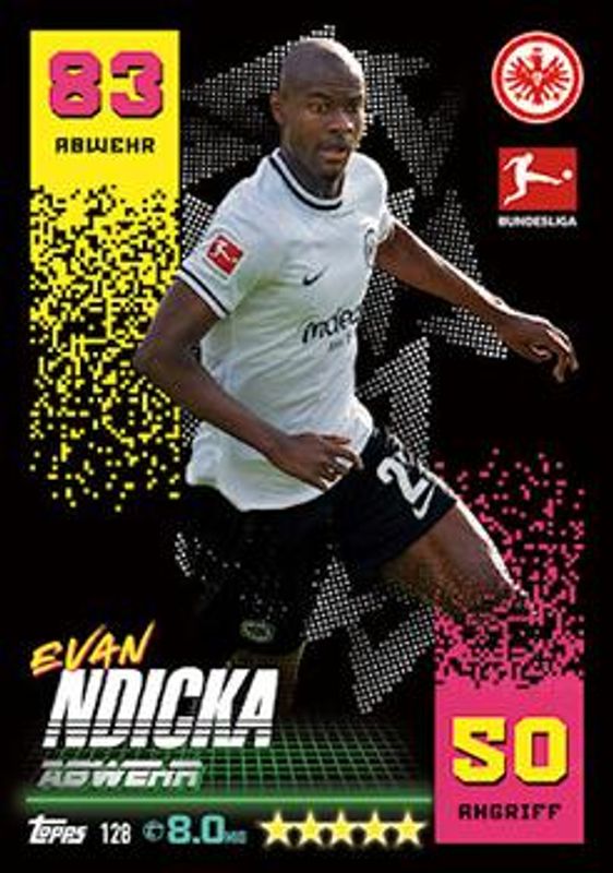 Evan Ndicka's Soccer cards are available in at least 12 sets. Evan Ndicka's biggest 7-day price movers are 2022 Topps Match Attax Bundesliga #128 Base, 2022 Topps UEFA Superstars #123 Seismic Orange /25, and 2022 Topps UEFA Superstars #123 Golden /50.