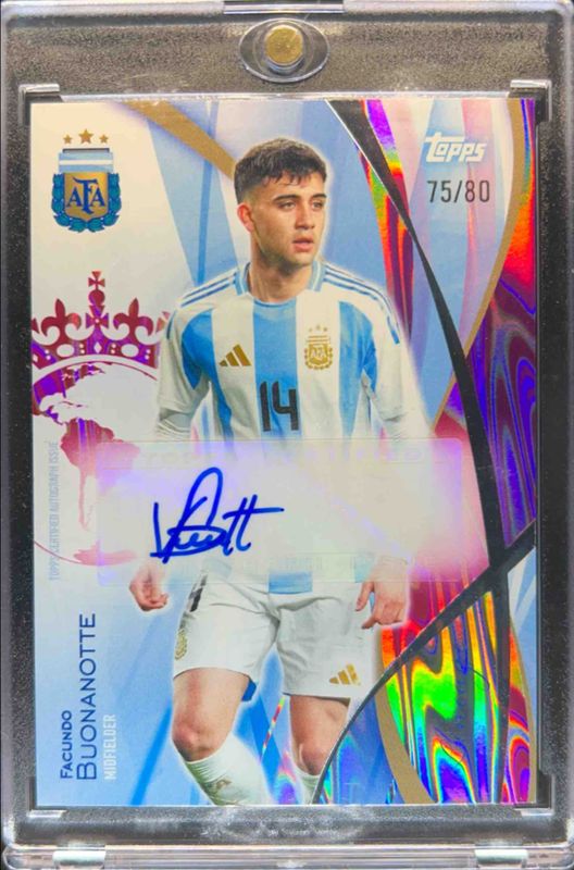 Facundo Buonanotte's Soccer cards are available in at least 21 sets. Facundo Buonanotte's biggest 7-day price movers are 2024 Topps Lineage Argentina #IA-FB Argentina Icons Autographs - Pink Tango /80, 2024 Topps Lineage Argentina #IA-FB Argentina Icons Autographs - Green Tango /75, and 2024 Topps Lineage Argentina #IA-FB Argentina Icons Autographs - Teal Tango /99.