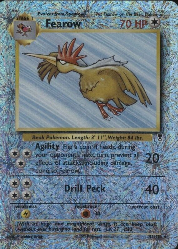 Fearow's Pokemon cards are available in at least 25 sets. Fearow's biggest 7-day price movers are 1999 Jungle #36/64 Unlimited, 2002 Expedition #011/165 Holo, and 2002 Expedition #011/165 Reverse Holo.