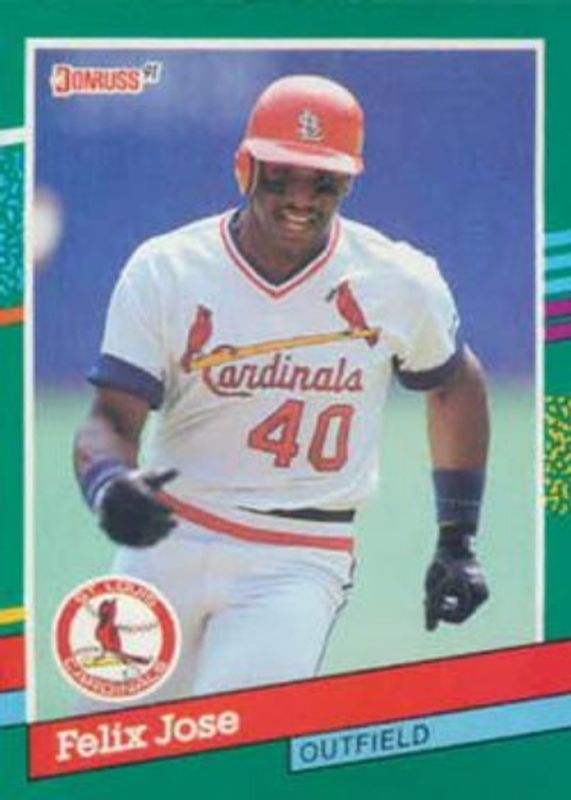 Felix Jose's Baseball cards are available in at least 34 sets. Felix Jose's biggest 7-day price movers are 1991 Donruss #656 Base, 1993 SP #230 Base, and 1989 Score #629 Base.