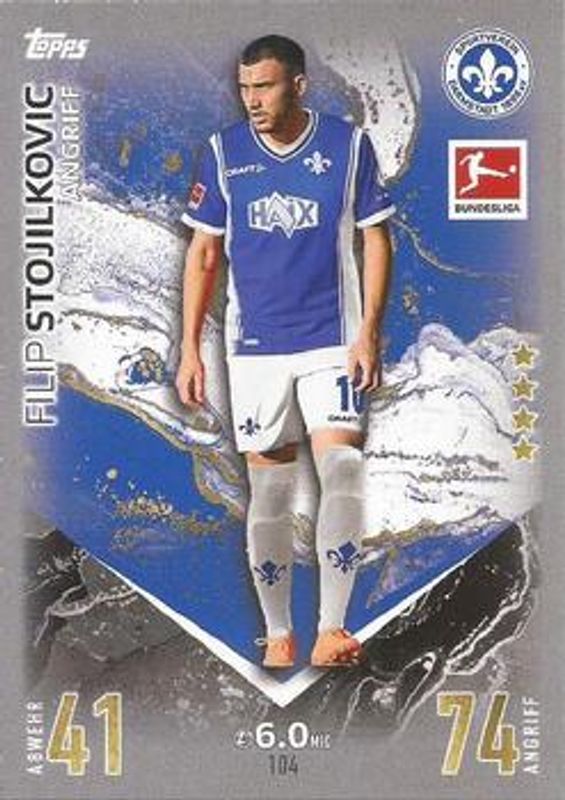 The biggest 30-day change Filip Stojilkovic cards are 2023 Topps Match Attax Bundesliga #104 Base, 2023 Topps Match Attax Bundesliga #FT5 Flex Tech Mint /1, and 2023 Topps Match Attax Bundesliga #FT5 Flex Tech - Magenta /99.