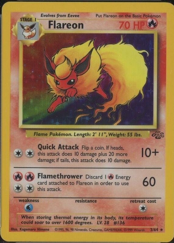 Flareon's Pokemon cards are available in at least 38 sets. Flareon's biggest 7-day price movers are 2010 HeartGold & SoulSilver: Undaunted #26/90 Base, 2025 Scarlet & Violet: Prismatic Evolutions #013/131 Reverse Holo, and 2010 HeartGold & SoulSilver: Undaunted #26/90 Reverse Holo.