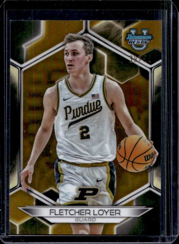 Fletcher Loyer's Basketball cards are available in at least 3 sets. Fletcher Loyer's biggest 7-day price movers are 2024 Bowman Chrome University Sapphire Edition #97 Black Refractor /10, 2024 Bowman Chrome University Sapphire Edition #97 Gold Refractor /50, and 2024 Bowman Chrome University Sapphire Edition #97 Padprasascha /1.