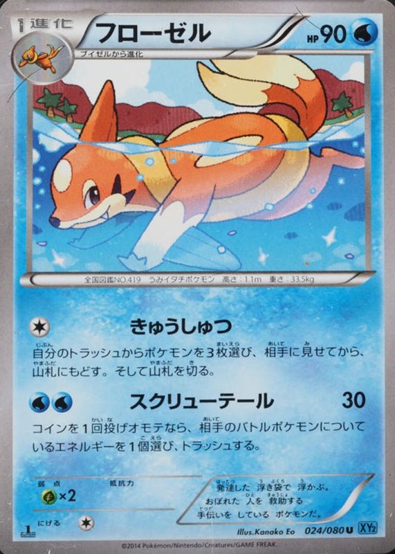 Floatzel's Pokemon cards are available in at least 12 sets. Floatzel's biggest 7-day price movers are 2014 Japanese XY: Wild Blaze #024/080 1st Edition, 2023 Japanese Scarlet & Violet: Triplet Beat #026/073 Base, and 2012 Japanese Black & White: Dragon Blast #014/050 1st Edition.