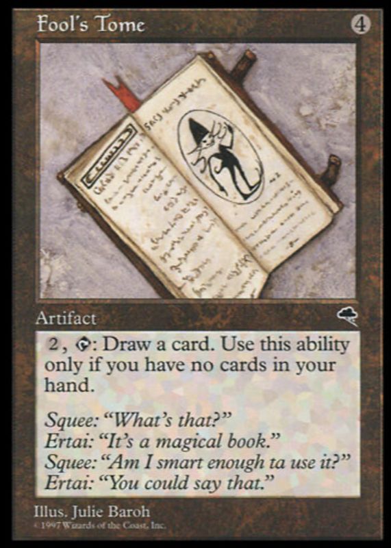 Fool's Tome's Magic: The Gathering cards are available in at least 1 sets. Fool's Tome's biggest 7-day price movers are 1997 Tempest Base.