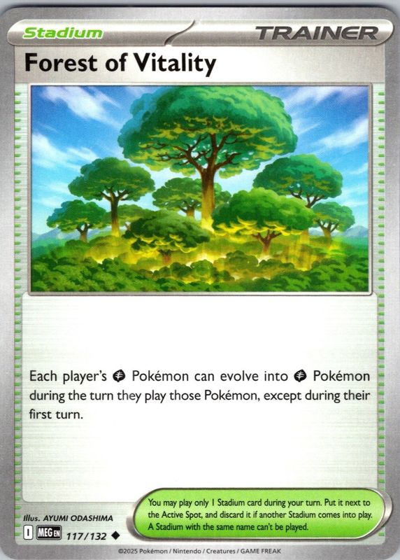 Forest of Vitality's Pokemon cards are available in at least 5 sets. Forest of Vitality's biggest 7-day price movers are 2026 Mega Evolution: Perfect Order #109/88 Ultra Rare (Full Art), 2026 Japanese Mega: Nihil Zero #109/80 Super Rare (Full Art), and 2025 Mega Evolution #117/132 Reverse Holo.