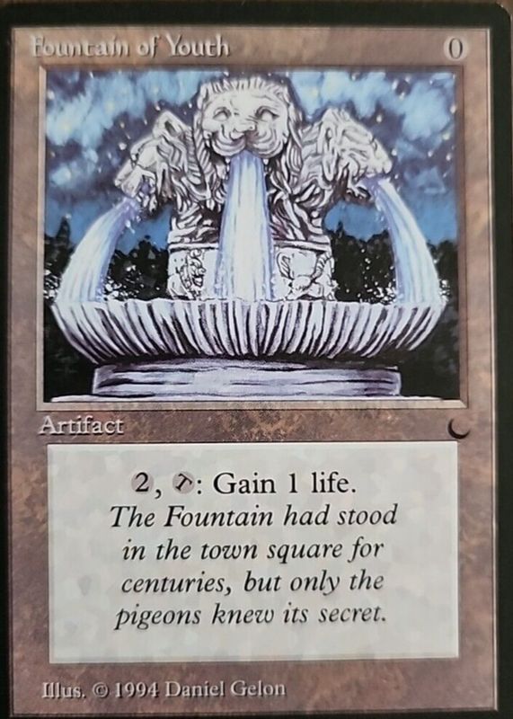 Fountain of Youth's Magic: The Gathering cards are available in at least 1 sets. Fountain of Youth's biggest 7-day price movers are 1994 The Dark Base.