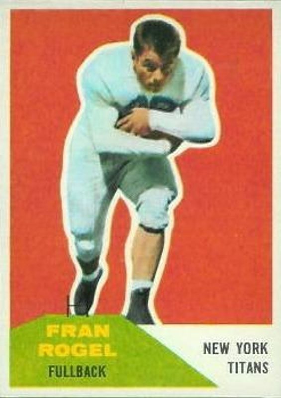 Fran Rogel's Football cards are available in at least 5 sets. Fran Rogel's biggest 7-day price movers are 1960 Fleer #43 Base, 1957 Topps #27 Base, and 1956 Topps #15 Base.