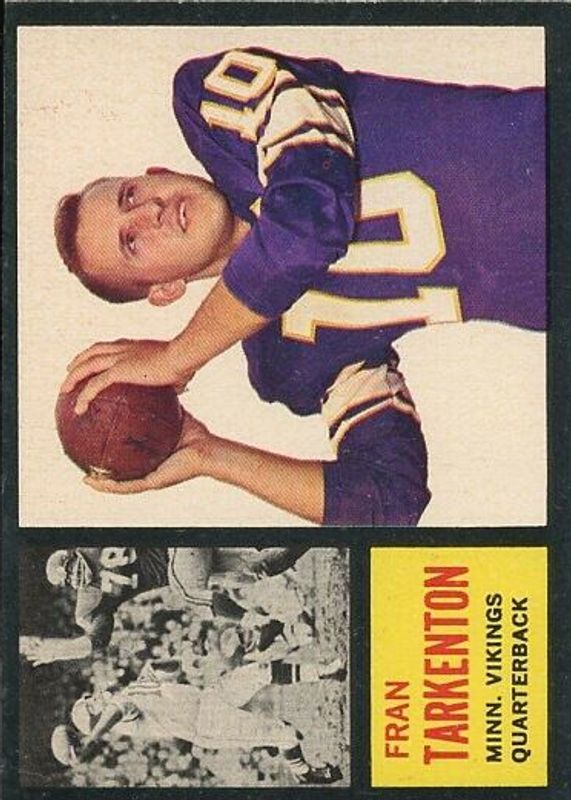 Fran Tarkenton's Football cards are available in at least 79 sets. Fran Tarkenton's biggest 7-day price movers are 1962 Topps #90 Base, 2014 Prizm #75 Tie-Dye /25, and 2014 Prizm #75 Red White Blue.