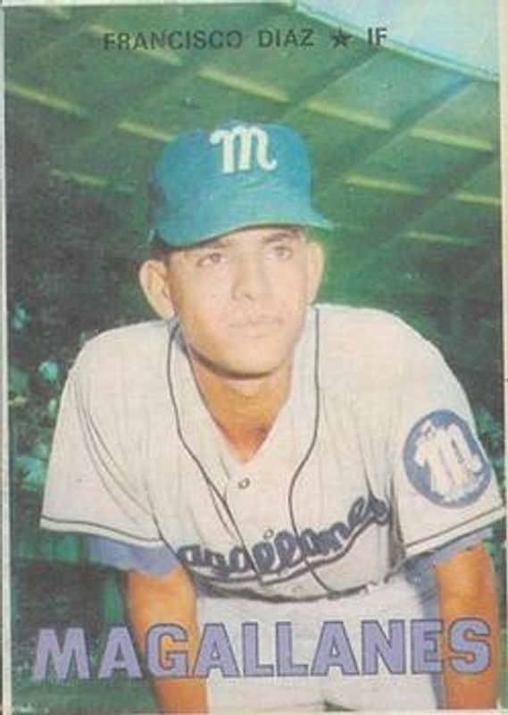 Francisco Diaz's Baseball cards are available in at least 1 sets. Francisco Diaz's biggest 7-day price movers are 1967 Topps Venezuelan #44 Base, and 1967 Topps Venezuelan #46a Base.