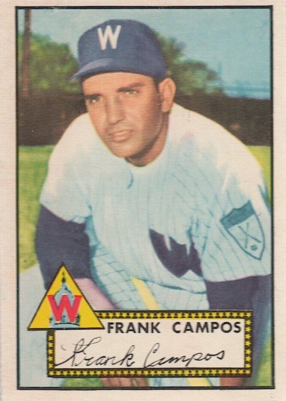 Frank Campos' Baseball cards are available in at least 3 sets. Frank Campos' biggest 7-day price movers are 1952 Topps #307 Base, 1953 Topps #51 Base, and 1992 Upper Deck Minor League #180 Base.