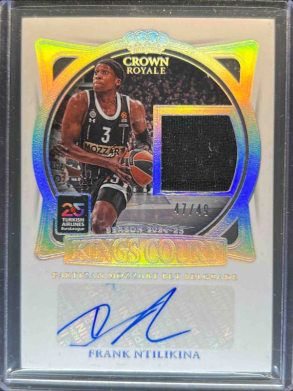 Frank Ntilikina's Basketball cards are available in at least 56 sets. Frank Ntilikina's biggest 7-day price movers are 2024 Crown Royale EuroLeague #20 Kings Court Jersey Auto /49, 2024 Crown Royale EuroLeague #38 Silhouettes Auto Relics - Super Prime /1, and 2024 Crown Royale EuroLeague #35 Heirs to the Throne Relics - Prime /25.
