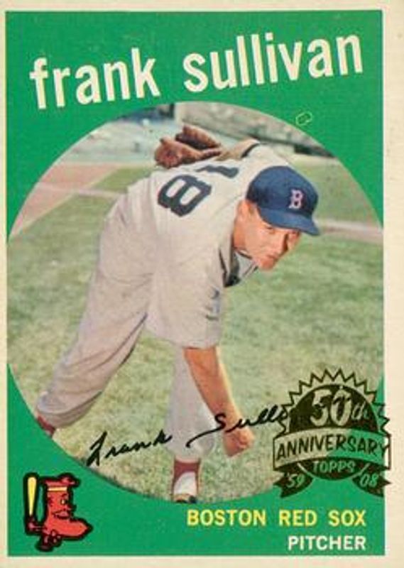 Frank Sullivan's Baseball cards are available in at least 16 sets. Frank Sullivan's biggest 7-day price movers are 1955 Topps Sports Illustrated #106 Base, 1956 Topps Pins Base, and 2008 Topps Heritage #323 50th Anniversary Buybacks.
